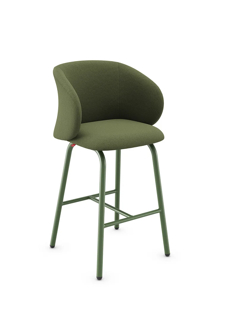 Seu encosto curvo proporciona um encaixe confortável para as costas, enquanto o assento estofado garante comodidade mesmo em permanências prolongadas.