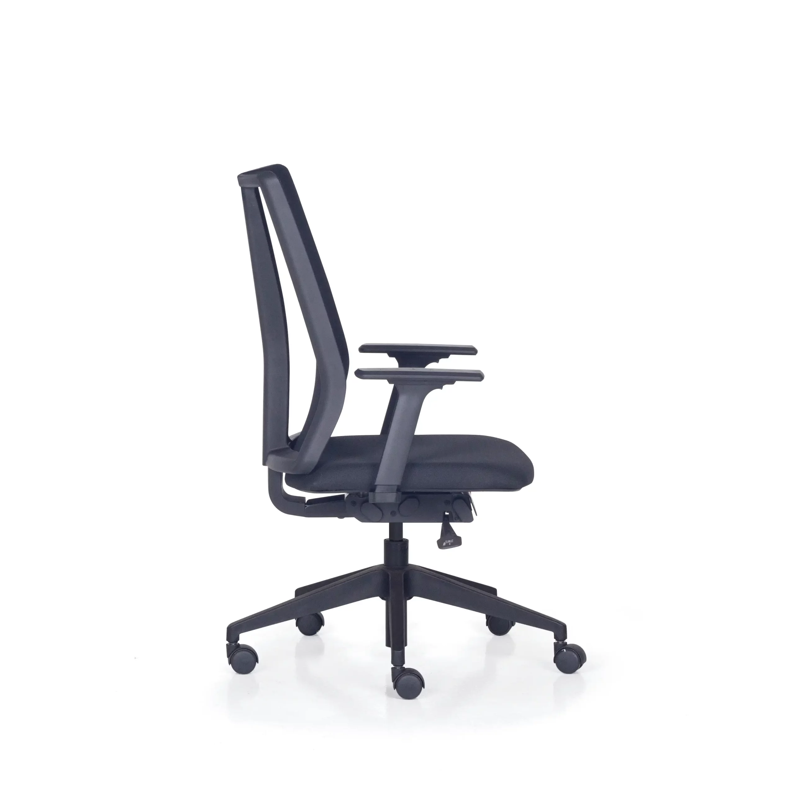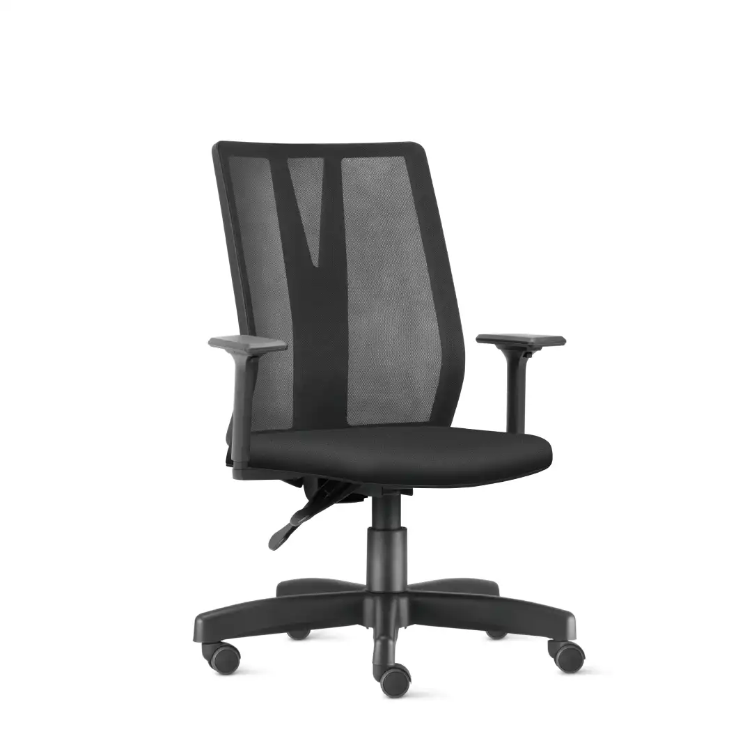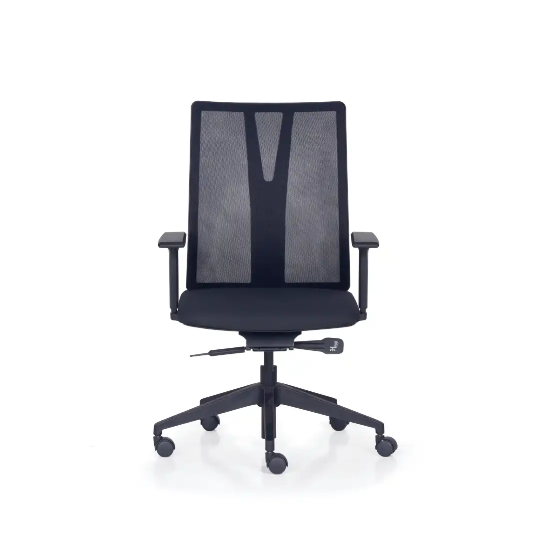 O assento com espuma injetada garante conforto e durabilidade, enquanto os braços ajustáveis e o mecanismo com múltiplas regulagens, permitem uma experiência personalizada para cada perfil.