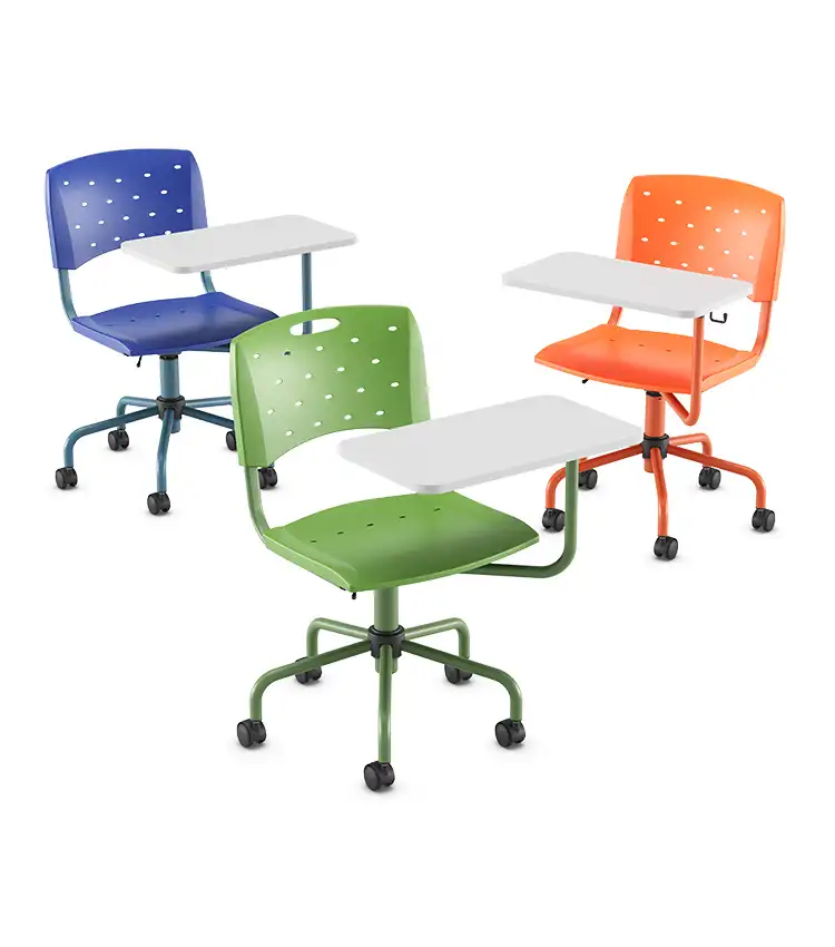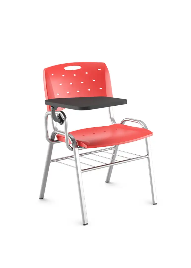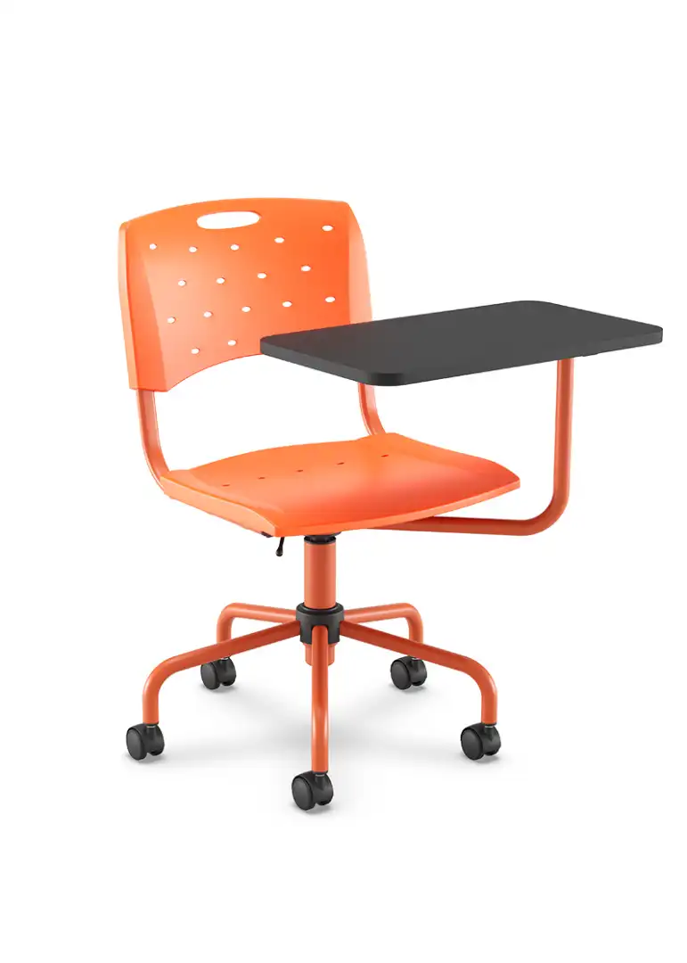 Seu principal diferencial é a prancheta com rotação 360°, que permite rápida adaptação para canhotos e destros, além de flexibilidade no layout da sala.