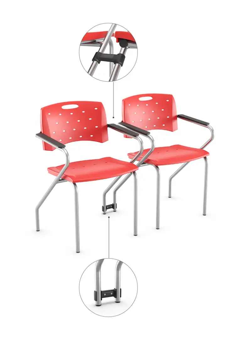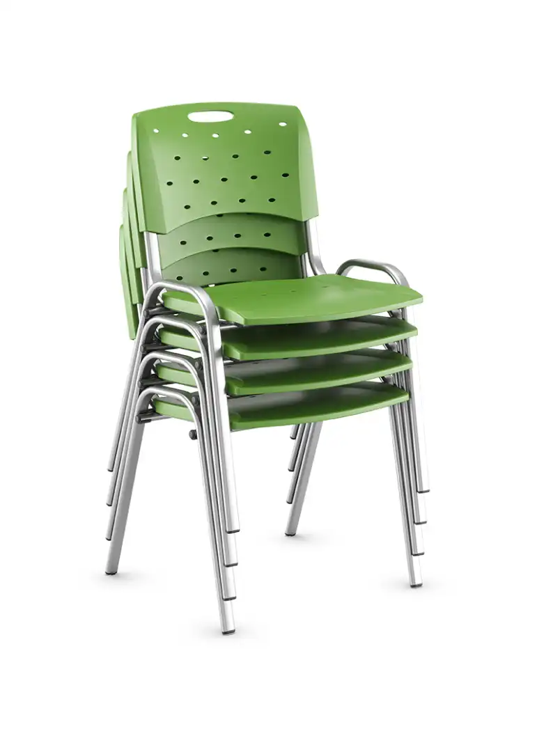 A Cadeira Multifuncional Viva é pensada para dinamizar o uso de salas de aula, coworkings, oficinas e espaços de treinamento.