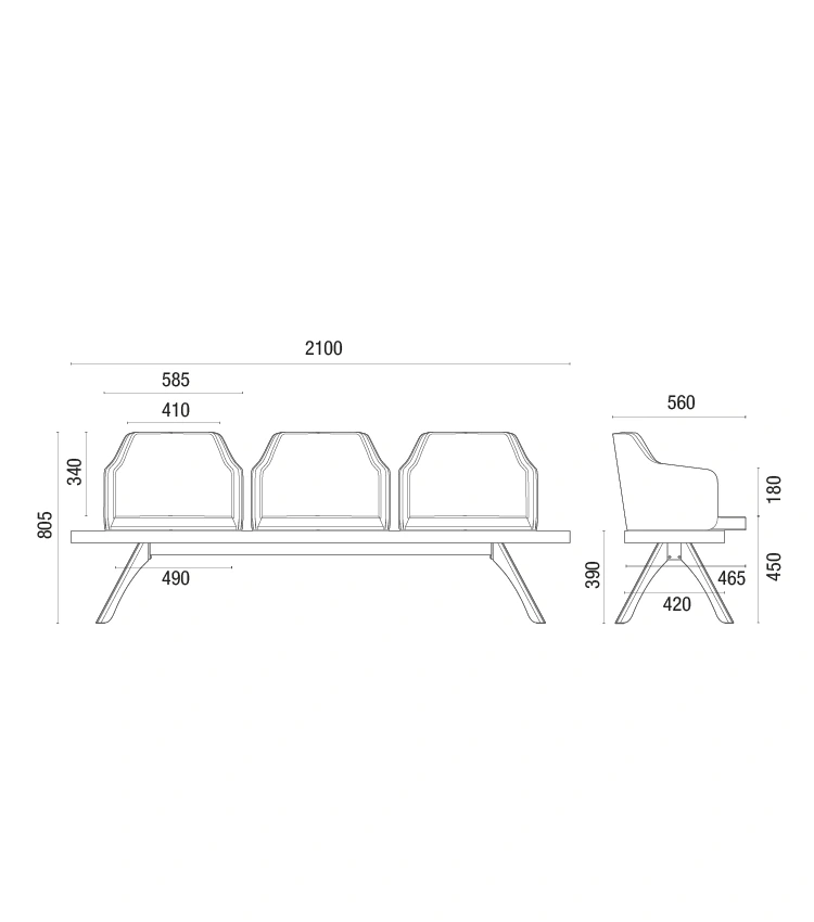 Com assento e encosto estofados e estrutura robusta, oferece excelente conforto mesmo em longos períodos de espera. Recomendada para recepções corporativas, clínicas, coworkings e áreas institucionais que desejam unir funcionalidade e estilo.