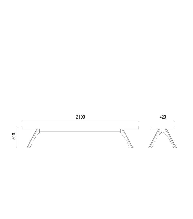 2100 mm largura total, 805 mm altura, 560 mm profundidade.