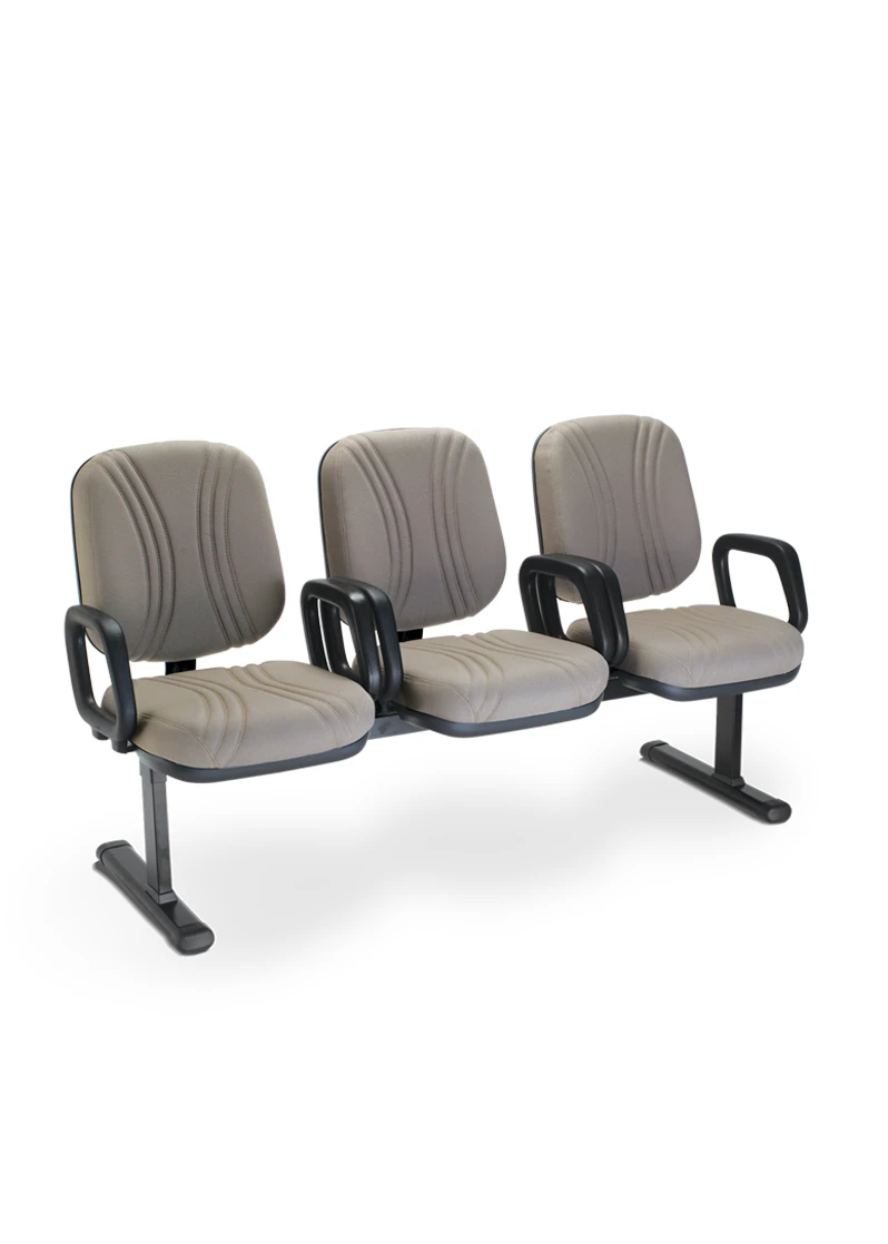 Com assentos e encostos estofados em espuma anatômica, ela proporciona conforto mesmo em períodos prolongados de espera. A estrutura metálica robusta garante resistência ao uso contínuo, enquanto o visual neutro e adaptável combina com diferentes estilos de projeto.