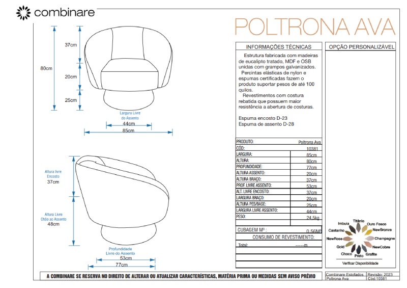 *Consulte nossa equipe para mais informações sobre revestimento e cores.
