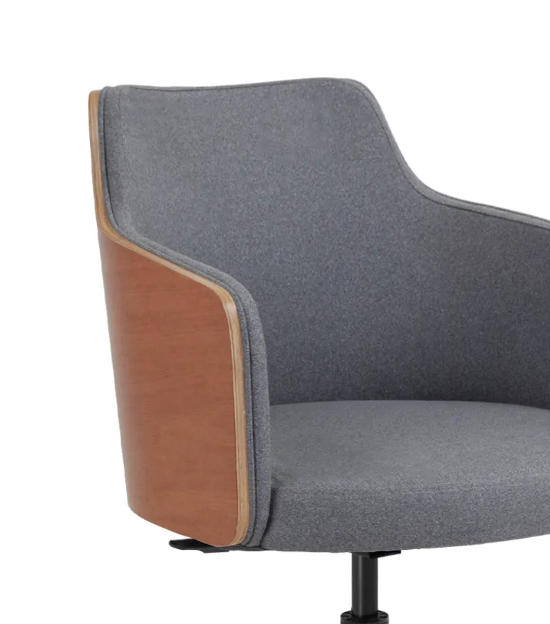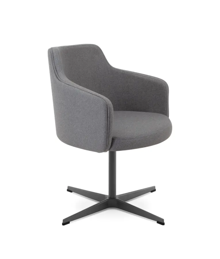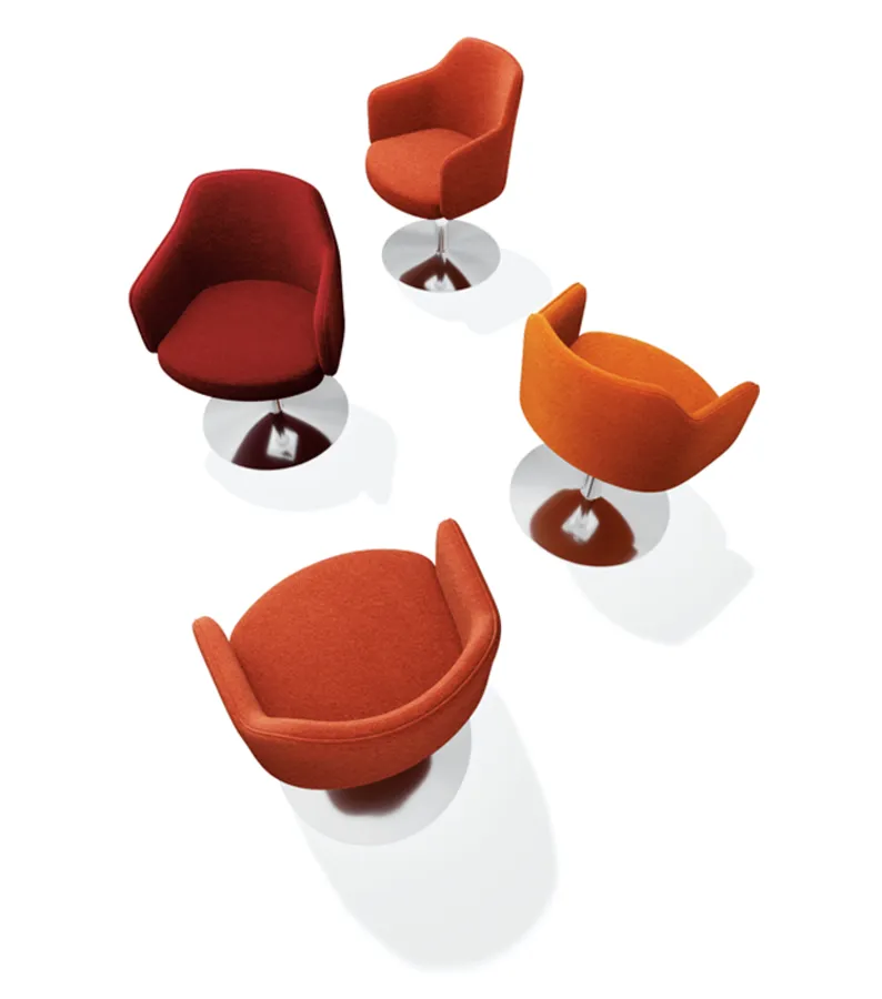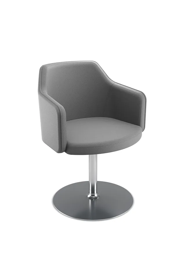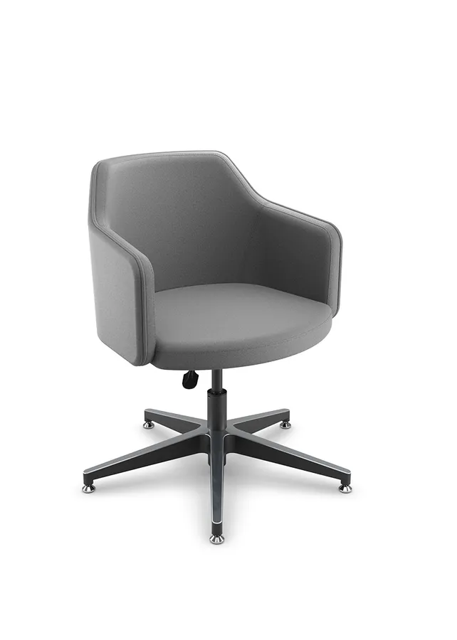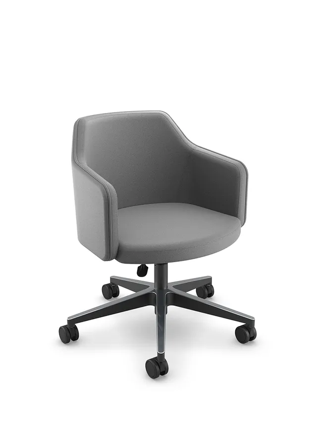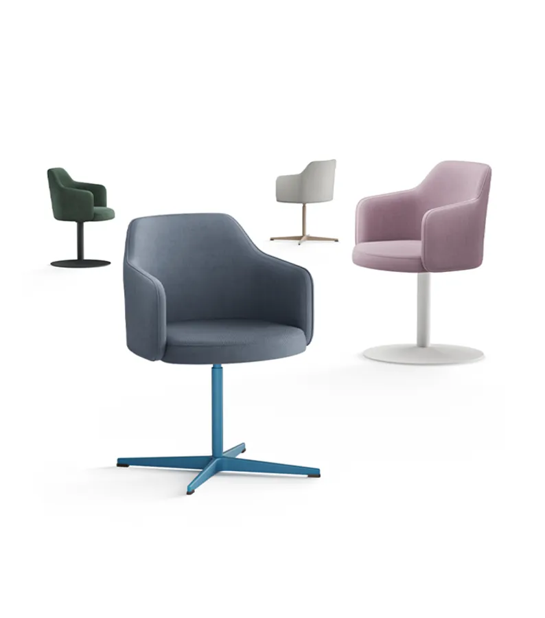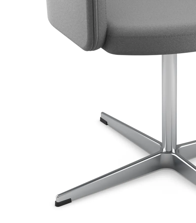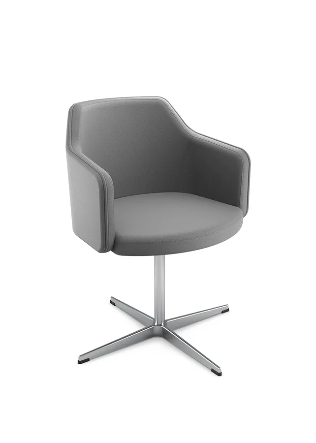Seus traços envolventes favorecem a postura ergonômica e proporcionam bem-estar em usos prolongados. A variedade de acabamentos e bases oferece liberdade criativa para integrar a poltrona aos mais diferentes estilos de decoração.