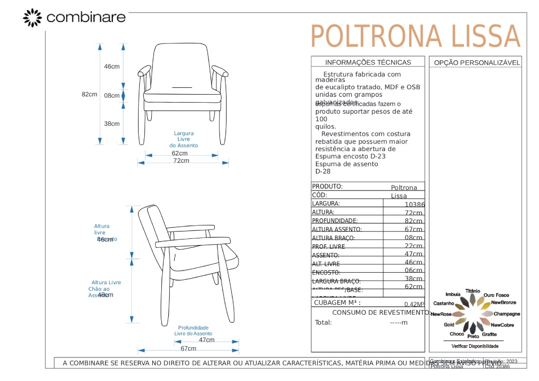 *Consulte nossa equipe para mais informações sobre revestimento e cores.