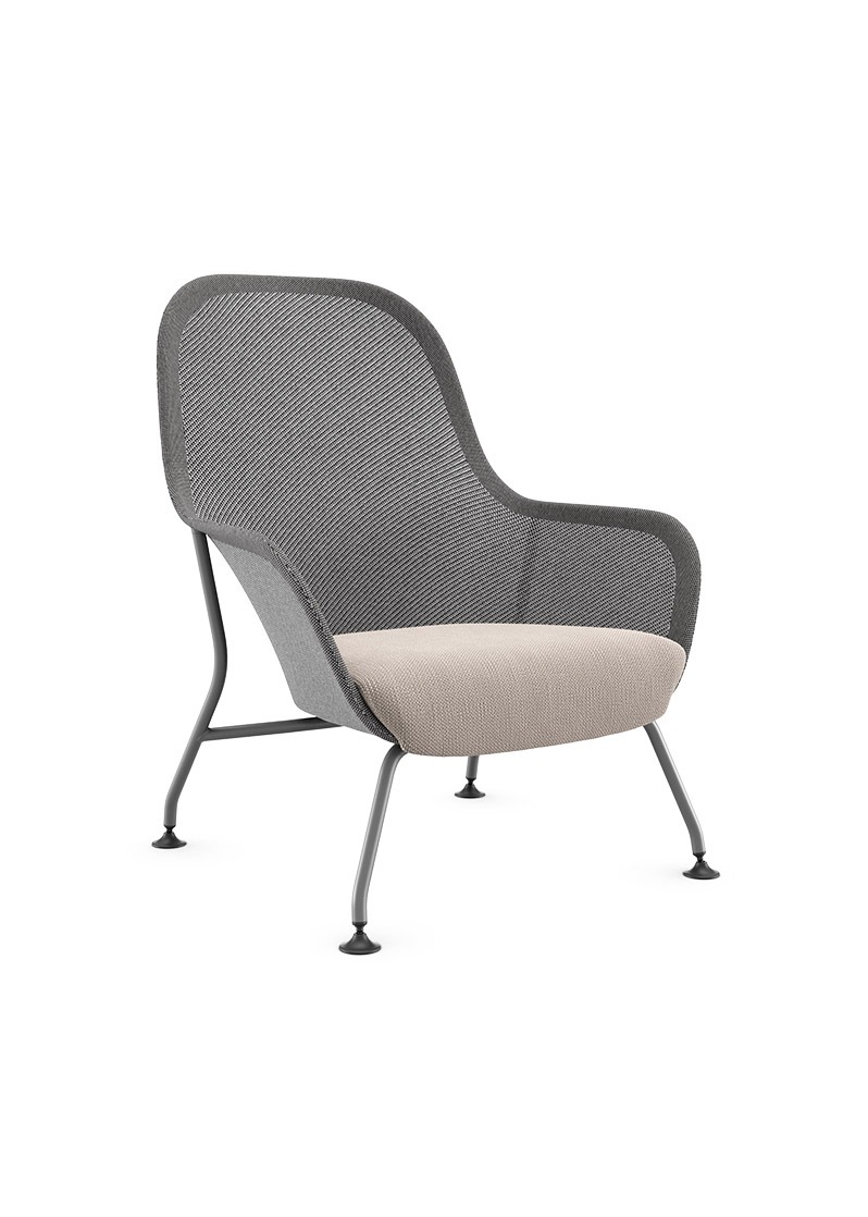 A Poltrona Raya une design funcional com sustentabilidade, seu encosto em tela 3D KNIT proporciona ventilação e um visual moderno, enquanto o assento espumado garante conforto para momentos de pausa.