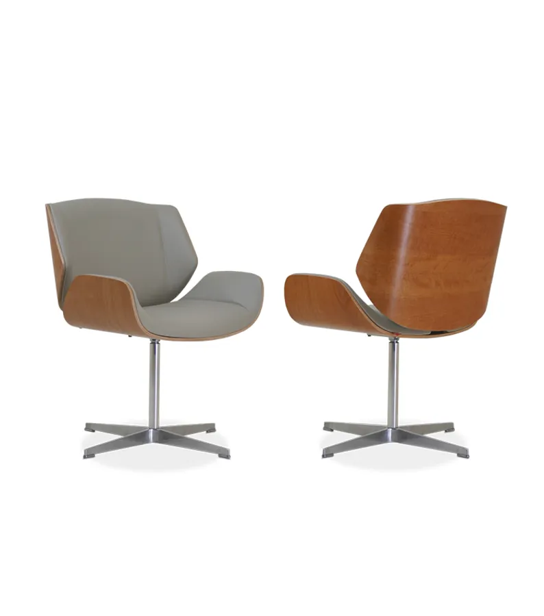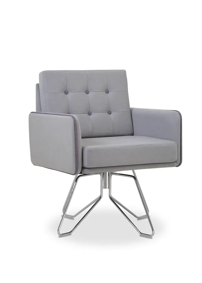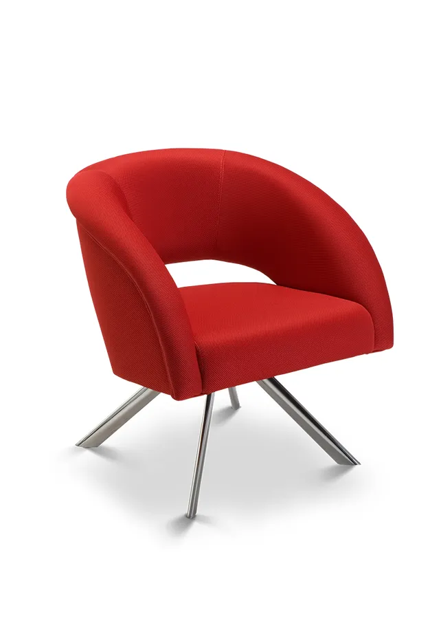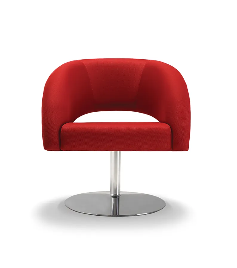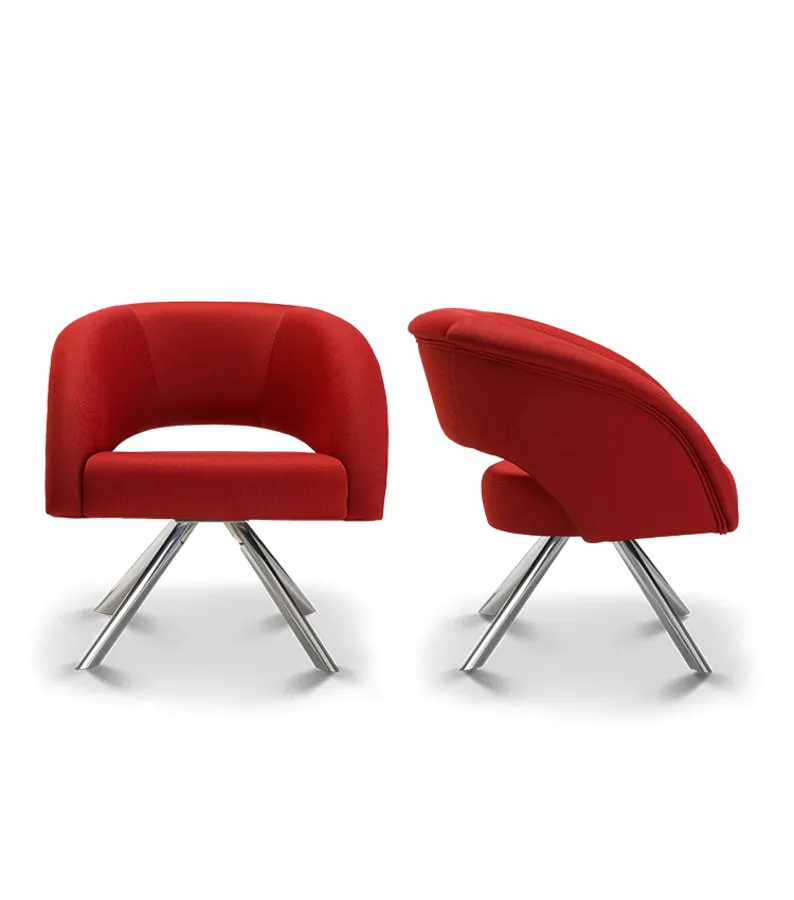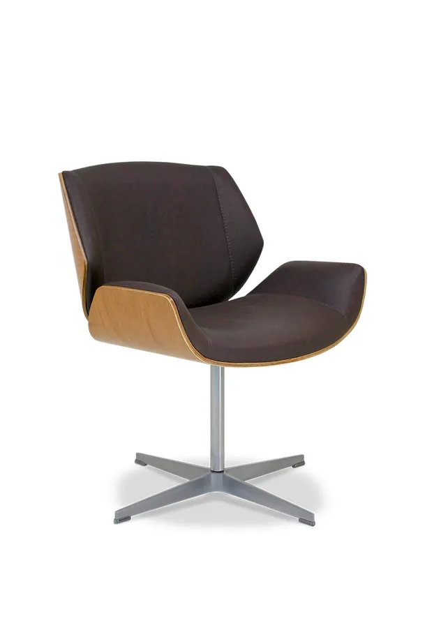 A Poltrona Spot combina estilo moderno com ergonomia, seu formato curvo e base metálica inclinada criam uma presença marcante e convidativa.