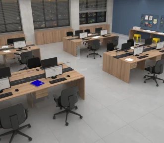 Com fabricação própria, garantimos precisão nas medidas e liberdade para personalizações. Nosso time técnico acompanha todo o processo, desde o desenvolvimento do layout até o ajuste final do mobiliário no espaço. O resultado são estações funcionais, duráveis e perfeitamente integradas à arquitetura do escritório.
