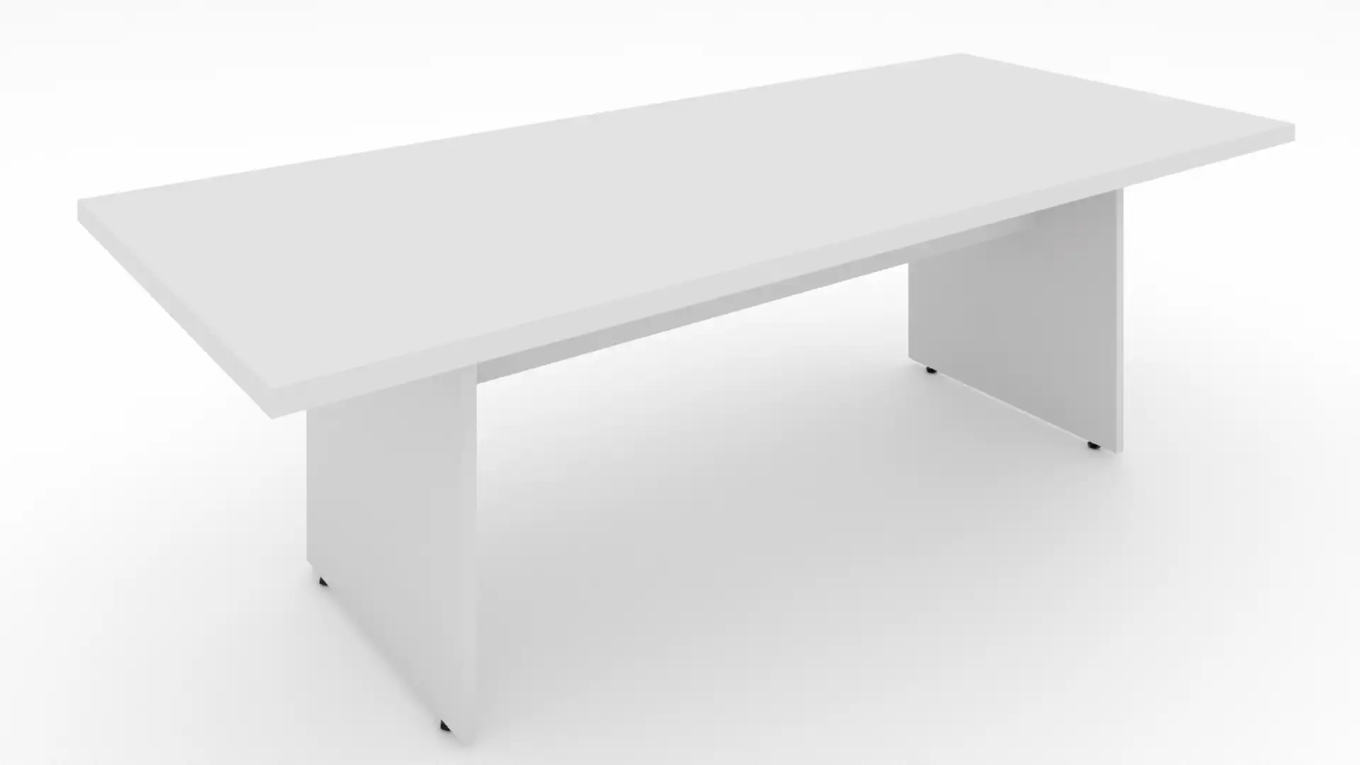A base lateral em painéis cria um visual contínuo e sóbrio, além de reforçar a estabilidade para uso diário. Essa solução funciona bem em salas executivas, áreas de treinamento e espaços de alinhamento interno, onde a mesa se torna o ponto central da composição.