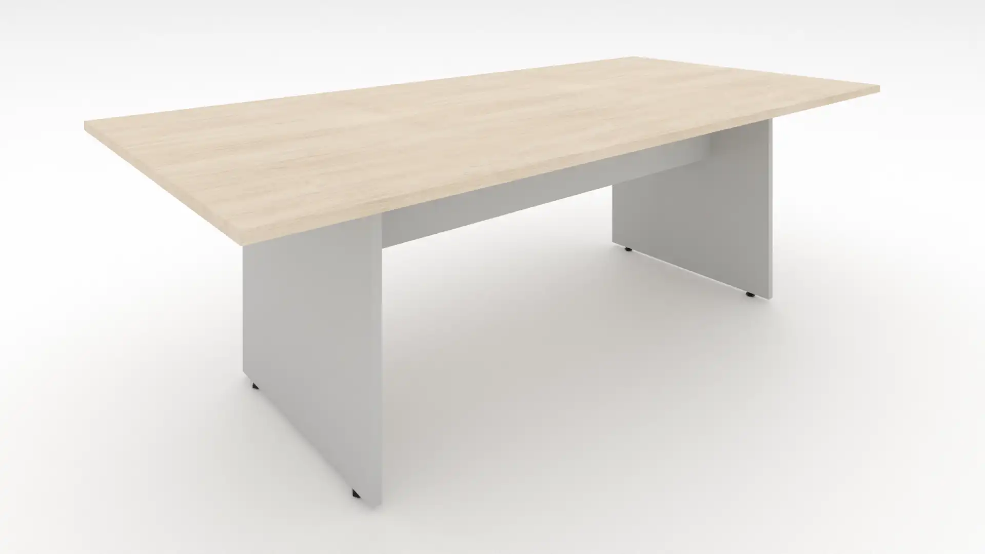 A Mesa de Reunião Retangular Pé Painel foi projetada para salas que pedem funcionalidade e coerência visual. A estrutura em painéis laterais cria um bloco contínuo e firme, reforçando a estabilidade e destacando o tampo como elemento principal do conjunto.