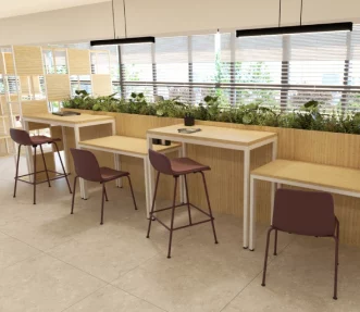 A MP Mobiliário oferece uma linha completa de Mesas Retas, com modelos que variam em estrutura (pés painel, metálicos ou tubulares), espessura de tampo, opções de cores e acessórios como calhas, gaveteiros e armários.